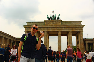 After we sat shocked for a little bit (and I'll admit, I had a bit of a cry out of frustration - I'd been in this city for less than 6 hours and two strangers had lectured me on being a terrible person), we realized that, given Berlin's particularly bloody history, I don't think there's a single place in the whole city where there *hasn't* been blood spilled. Tempelhof Field, a huge park where locals gather to kiteboard and picnic? Former concentration camp. The East Side Gallery, where we saw tons of people lying out in bathing suits enjoying the sun? Site of people gunned down trying to escape the communist regime over the Berlin Wall. Brandenburg Gate, where we started our tour outside a Starbucks and photographed a bubble-busker entertaining children? Hundreds killed in the Battle of Berlin.