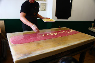 We stumbled into a fudge shop just as a batch was being poured onto the marble to cool, so at the insistence of the fudge-maker, we stayed to sample the freshest sample of fudge you could imagine. As he repeatedly told us, just four ingredients - cream, sugar, fresh raspberries and white chocolate. mmmm!